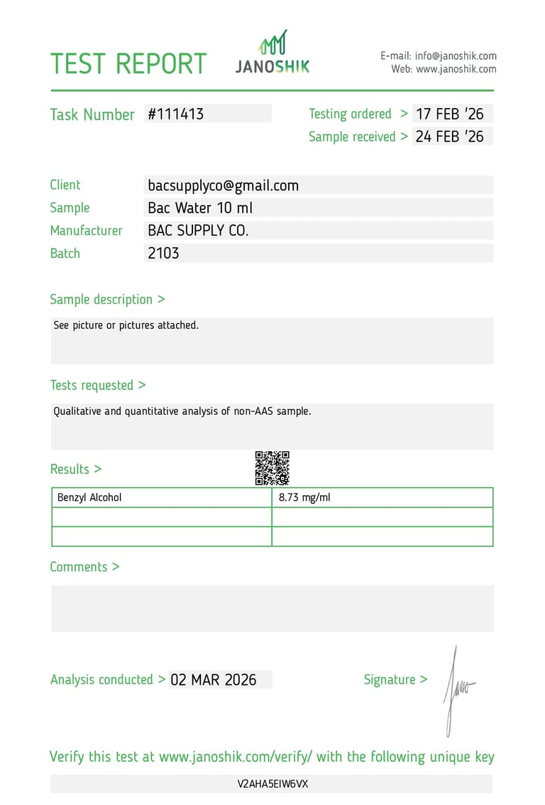 BAC SUPPLY CO. For All Of Your Reconstitution Solution Supply Needs.